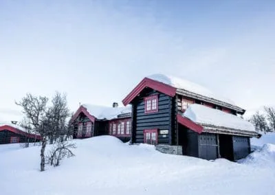 Haugbu is our largest cabin. Like all our traditional log cabins it has been carefully designed to give a comfortable home away from home feel. It has a total of 150 sqm and can be rented in its entirety or as two separate cabins: North and South. Altogether Haugbu accommodates up to 11 people, making it ideal for a large family holiday or for a large group of friends to spend time together. When rented as one large cabin there is plenty of space around the dining table for everyone to eat together.
